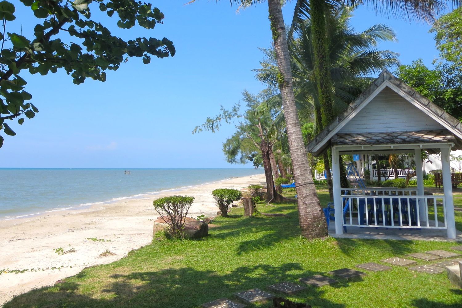 Near Klong Yai Town, the beach between the Barn Talaepu Resort and By the Sea hotel is the only nice beach we came across. Near Barn Talaepu Resort the beach is wide with fine sand and the water is calm and good for swimming, although it is not as clear as many other beaches. This is a good place to stroll and relax.